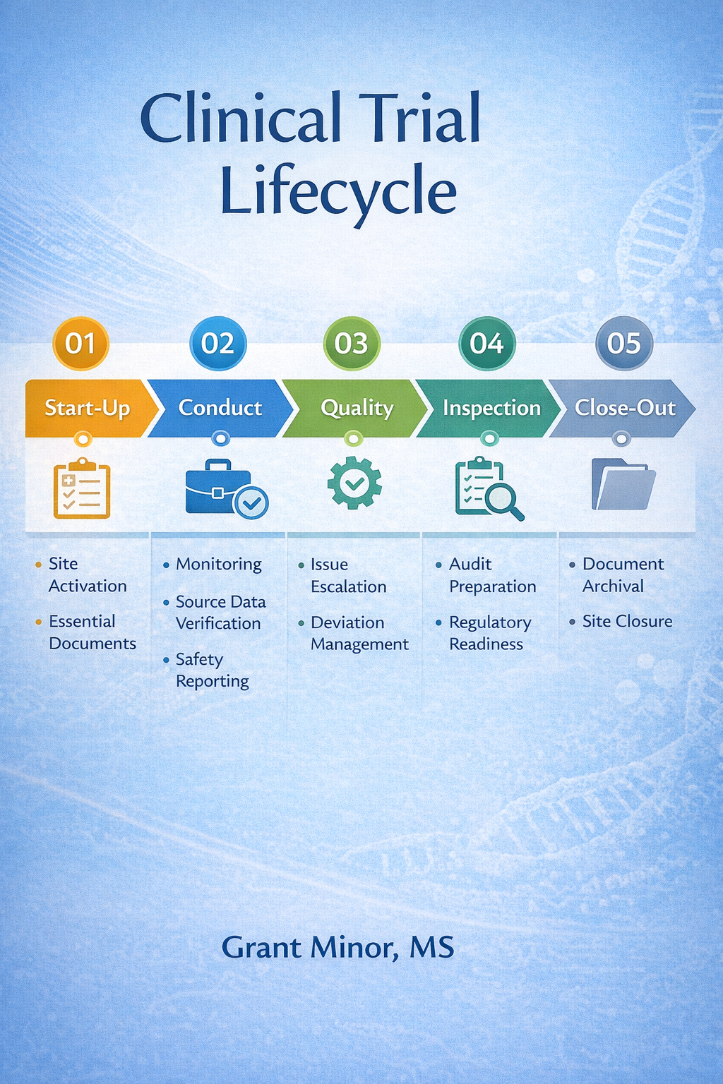 This module provides a high-level view of the clinical trial lifecycle and situates CRA responsibilities within each phase.